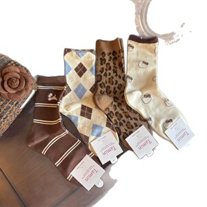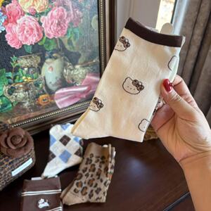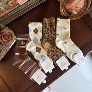 秋冬美拉德色系组合袜子小狗菱形格子豹纹款式直播推荐组合女中筒