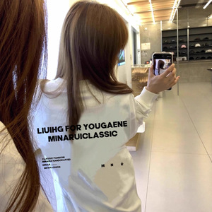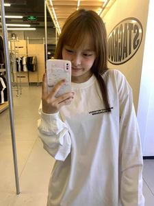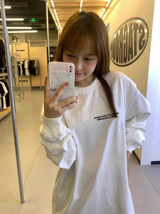 胖mm美式潮牌纯棉大码长袖t恤女春秋宽松慵懒风休闲打底衫上衣服