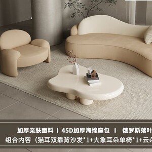 【科技皮】大象耳朵单椅+2.1米沙发+云朵茶几 送柔软抱枕