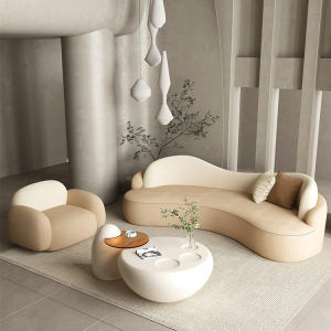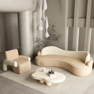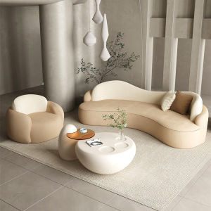 奶油风客厅小户型沙发美容院接待弧形沙发服装店简约现代沙发组合