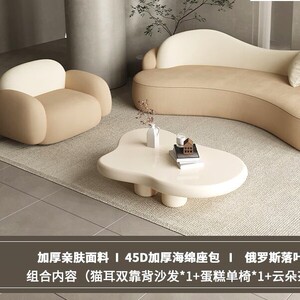【科技皮】蛋糕单椅+2.1米沙发+云朵茶几 送柔软抱枕