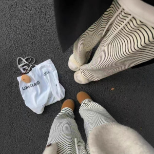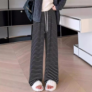 软糯条纹糯米裤子女阔腿裤垂感慵懒遛弯裤秋季宽松休闲直筒长裤