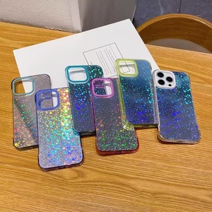 适用iphone16promax韩风金箔星闪手机壳苹果15无边框新款保护套女