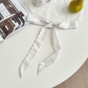 蓝色波点丝巾长条高级感韩版多用格纹系脖小领巾发带绑发绑包飘带