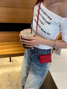 新款迷你零钱包头层TC牛皮信封腰包挂脖包小众mini腰带真皮卡包