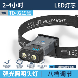 TD-0213感应式双光源头灯【黑灰色;内置电池500MAH】