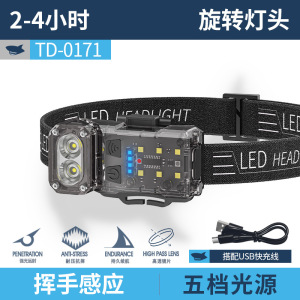TD-0171多功能感应式头灯【COB侧灯+磁吸+旋转灯头+电显】