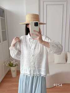 9254衬衣女重工刺绣棉上衣大码宽松设计感花边长袖衬衫潮
