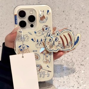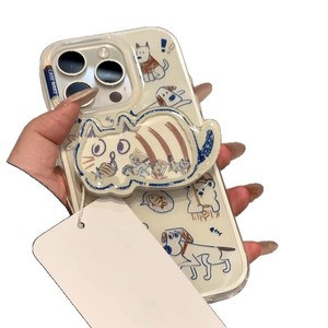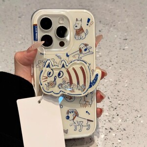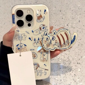 可爱纯白素涂鸦猫咪摇摇乐支架适用iPhone17promax苹果15手机壳14