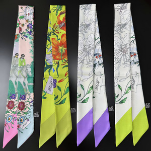 韩版春夏新款花卉女士斜纹绸装饰飘带缠绑包包丝带丝巾小领巾批发
