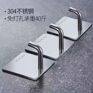 不锈钢免打孔挂钩强力粘胶厨房墙壁承重壁挂粘钩衣无痕钉金属钩子