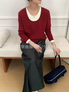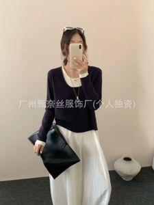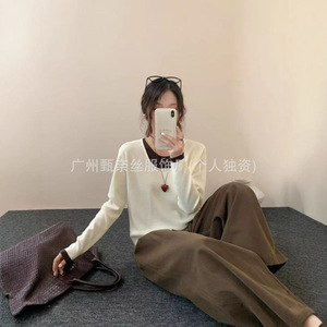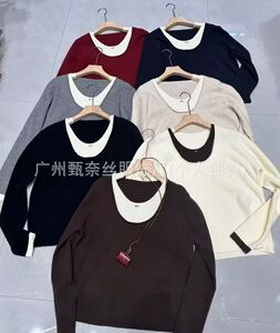 实拍2025秋冬韩版气质V领撞色假两件百搭针织衫长袖打底上衣女装