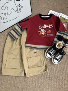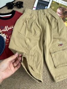 杉伴韩系男小童秋季新款拉链大口袋高腰刺绣长裤宝宝收脚款休闲裤