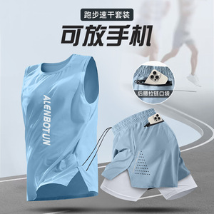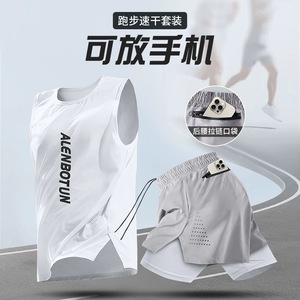 跑步运动套装男马拉松速干背心健身训练服夏季冰丝短裤专业晨跑服