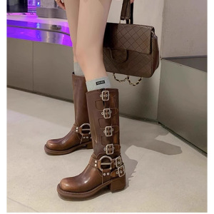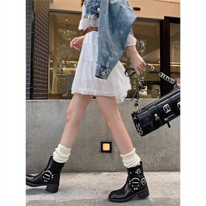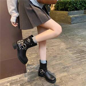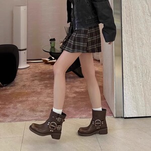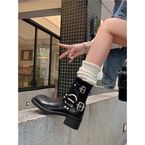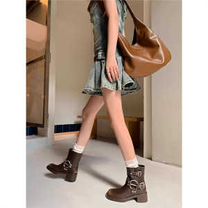 短靴女复古马丁靴女英伦风2025新款方头粗跟短筒机车靴骑士靴
