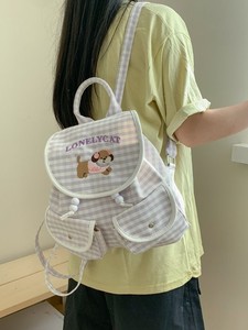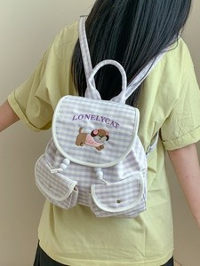 韩系ins风腊肠狗双肩包包初高中学生格子书包少女多巴胺百搭背包