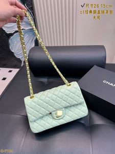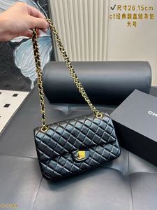 跨境实物图带标带LOGO香CF方胖子包奈新款单肩斜挎包菱格纹链条包