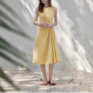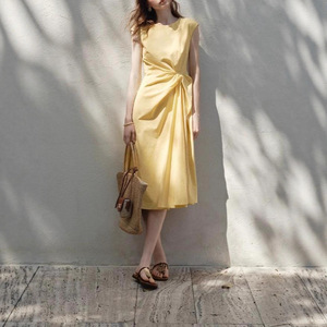 范思蓝恩 设计感扭结收腰连衣裙女2025夏季新款无袖A字小白裙
