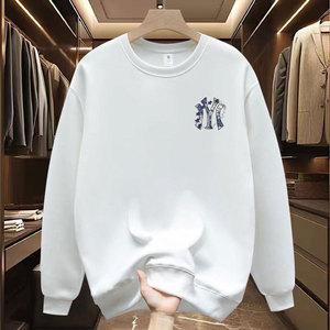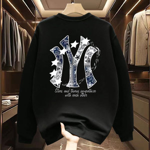 美式潮牌新款休闲男士秋冬加绒卫衣复古潮流圆领百搭印花男女上衣