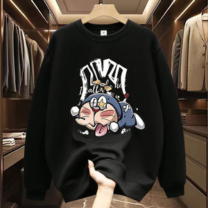 美式潮牌新款休闲男士秋冬加绒卫衣复古潮流圆领百搭印花男女上衣