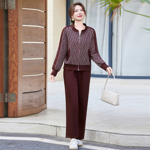 大码撞色宽松休闲妈妈装秋季新款运动服减龄显瘦中老年女装两件套