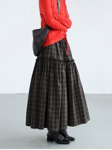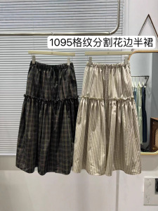 【博主同款】“和栗木屋”春秋格纹花边分割长半裙 源头厂家