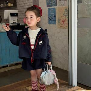女童外套2025秋季新款韩版洋气卡通夹克儿童网红潮款连帽拉链开衫