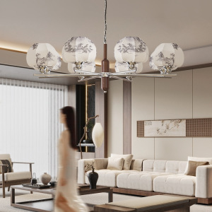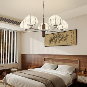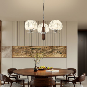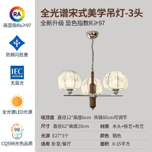中古风客厅吊灯新款法式复古南洋风胡桃木纹宋代美学布艺大厅吊灯