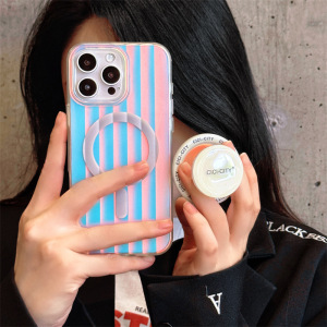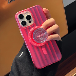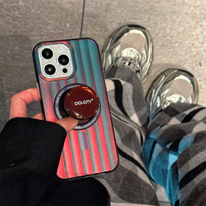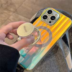 极光镭射支架苹果16Promax手机壳适用15Pro立体条纹磁吸双层14pro