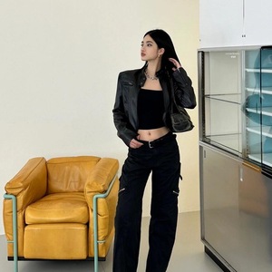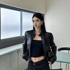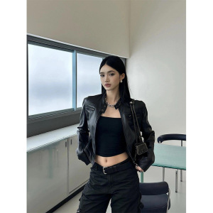 绿绿辣妹复古美式pu皮衣外套女短款春秋季百搭修身显瘦机车服夹克