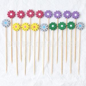 新品雏菊装饰签一次性竹签汉堡签鸡尾酒签艺术水果签100支
