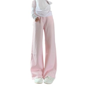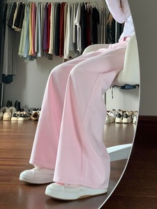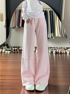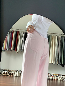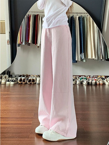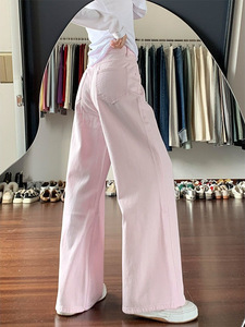 2025新款多巴胺浅粉色阔腿牛仔裤女甜酷高腰显瘦宽松拖地直筒裤子