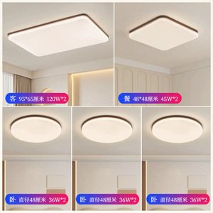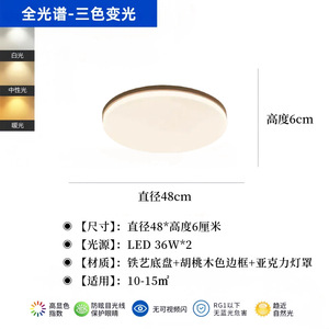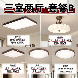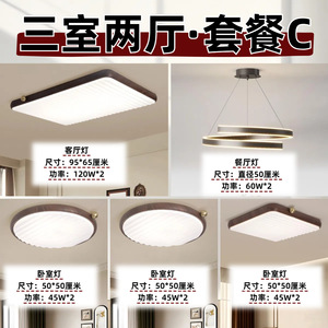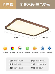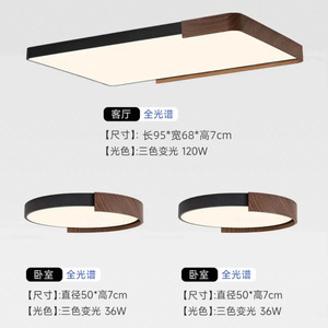 全光谱护眼吸顶灯中古卧室灯胡桃木纹客厅灯全屋家装灯饰中山灯具