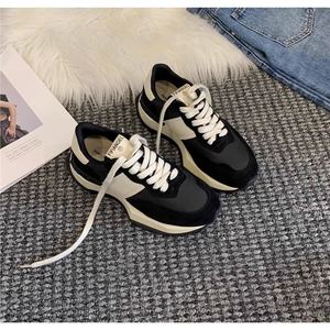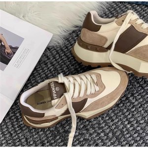 真皮拼色华夫阿甘鞋女2025春季新款厚底系带休闲运动鞋松糕鞋