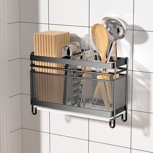 黑色【碳钢】-2格/壁挂台面双用【带沥水盘+4个挂钩】