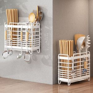筷子收纳盒厨房置物架免安装一体壁挂式家用筷筒筷笼餐具勺沥水架