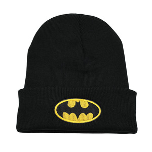 跨境新款漫威周边刺绣针织帽蝙蝠侠超人美国队长动漫卡通毛线帽子