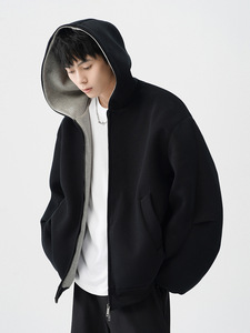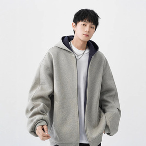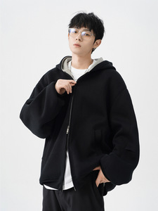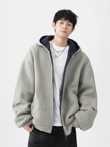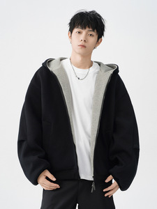 美式重磅双拉链连帽卫衣外套男秋冬痞帅休闲外套加厚撞色情侣开衫