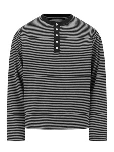 美式复古条纹亨利领长袖T恤男款通勤基础内搭打底衫白色正肩上衣