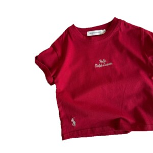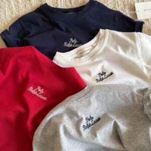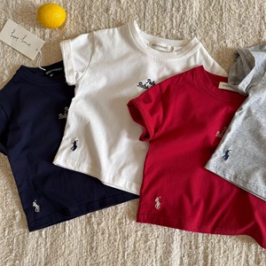 儿童短袖25夏男女童日系潮牌红色刺绣字母宝宝打底衫小童洋气T恤