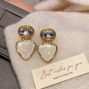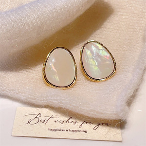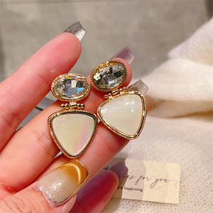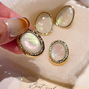 新款小众设计天然真贝壳宝石耳环S925银针高级感几何形轻奢耳饰品