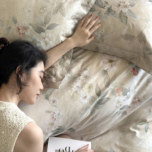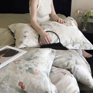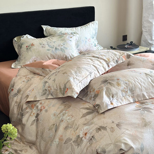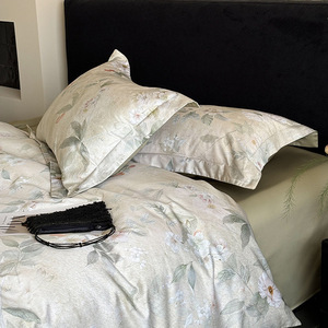 100S高支全棉四件套 贡缎长绒棉田园花卉被套春秋季纯棉床上用品
