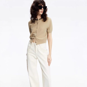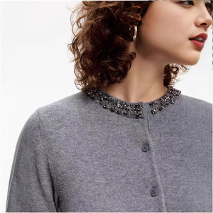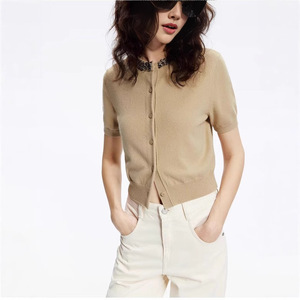 重工手缝钻饰圆领针织短袖 天丝莱赛尔 女士春夏短款针织开衫