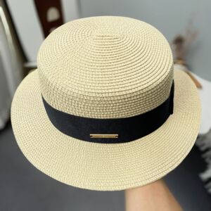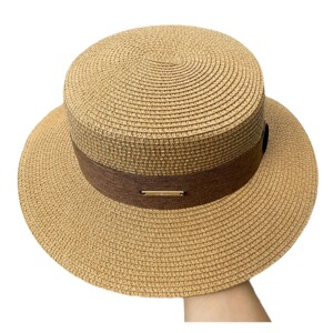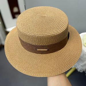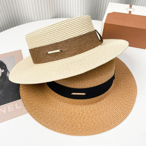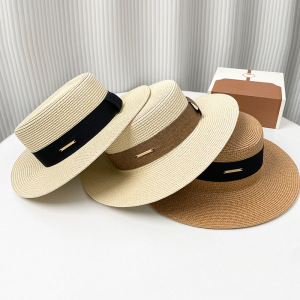 法式平顶草帽女新款夏季百搭遮阳帽海边度假沙滩帽防紫外线爵士帽