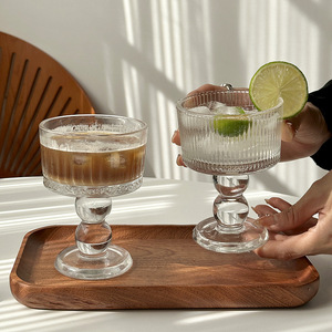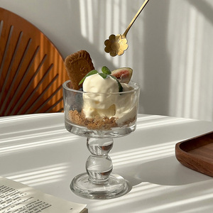 法式复古ins风高脚玻璃杯甜品布丁酸奶杯水果小吃创意冰淇淋杯碗