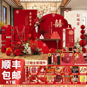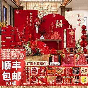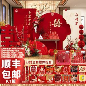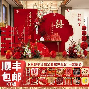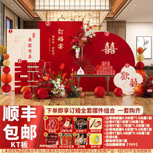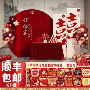 新中式订婚背景板现场布置全套装饰板背景板摆件摆台用品大全