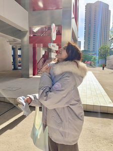 蓝色面包服短款女冬季新款韩版棉衣棉服女保暖学院风设计感外套潮
