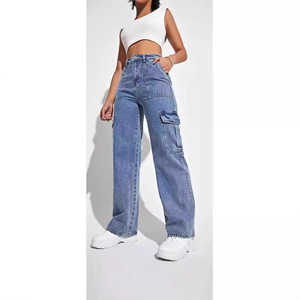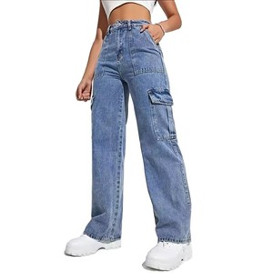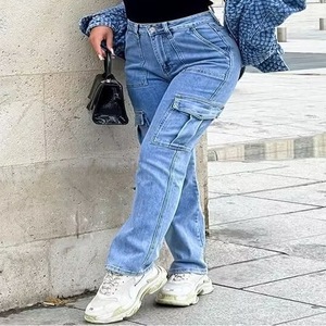 爆款美式复古女士高腰工装裤多口袋直筒高街潮牌牛仔长裤