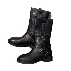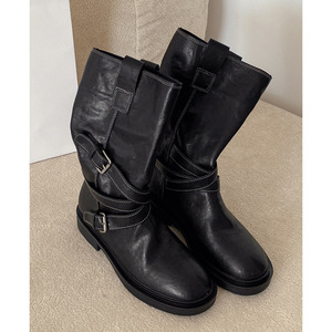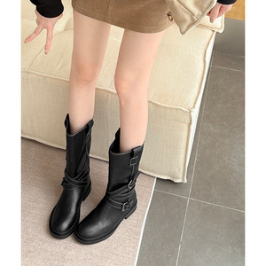 葡萄妈英伦风粗跟短靴皮带扣中筒马丁靴子女士裤管堆堆骑士皮靴