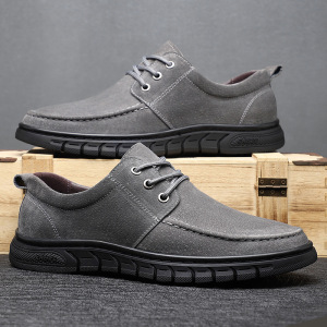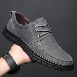 反绒男鞋2025年新款秋季软底猪皮潮流鞋青年百搭板鞋系带休闲皮鞋